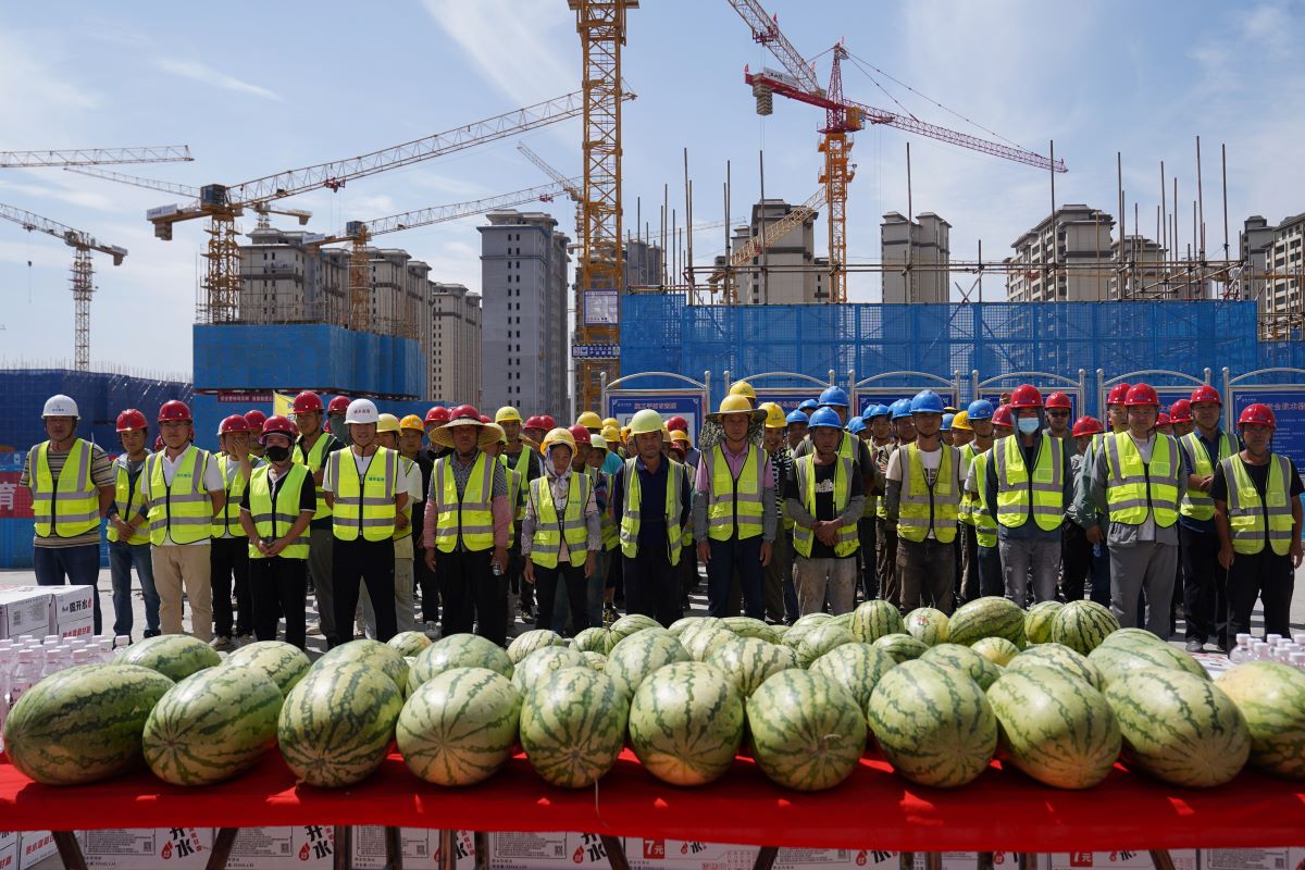 近日,市城控集团党委委员、纪委书记、监察专员钟立峰同志带队深入江山阅项目施工现场,开展党员干部下基层察民情解民忧暖民心实践活动暨“情系一线建设者,防暑降温送清凉”慰问,为奋战在江山阅项目上的一线员工发放矿泉水、西瓜等防暑降温物资。俊丰绿建集团党委书记、董事长胡锟、银川分公司相关负责人陪同参加。